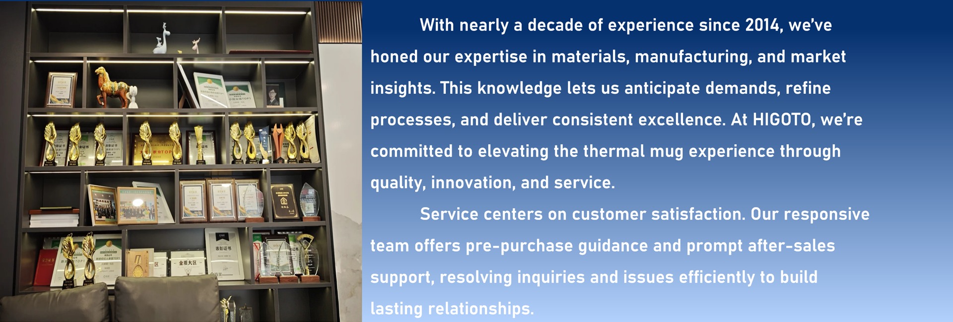 We are an international enterprise specializing in the research, development, production, and import-export of high-quality vacuum insulated bottles. With years of dedicated experience in the drinkware industry, we are committed to providing global consumers with products that combine innovative designs, superior thermal performance, and eco-friendly philosophy. Our solutions empower international clients to expand their market reach while meeting diverse consumer demands, and ultimately help people worldwide maintain healthy hydration habits through sustainable drinking solutions.